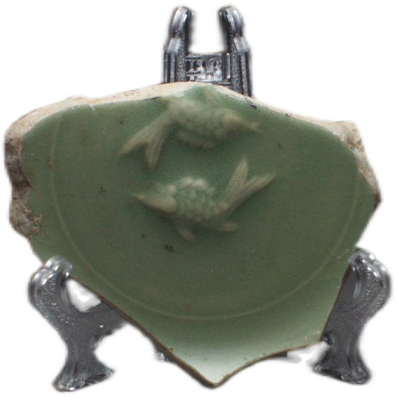 1808 Yuan Dynasty Longquan kiln stack plastic double fish porcelain specimen 280