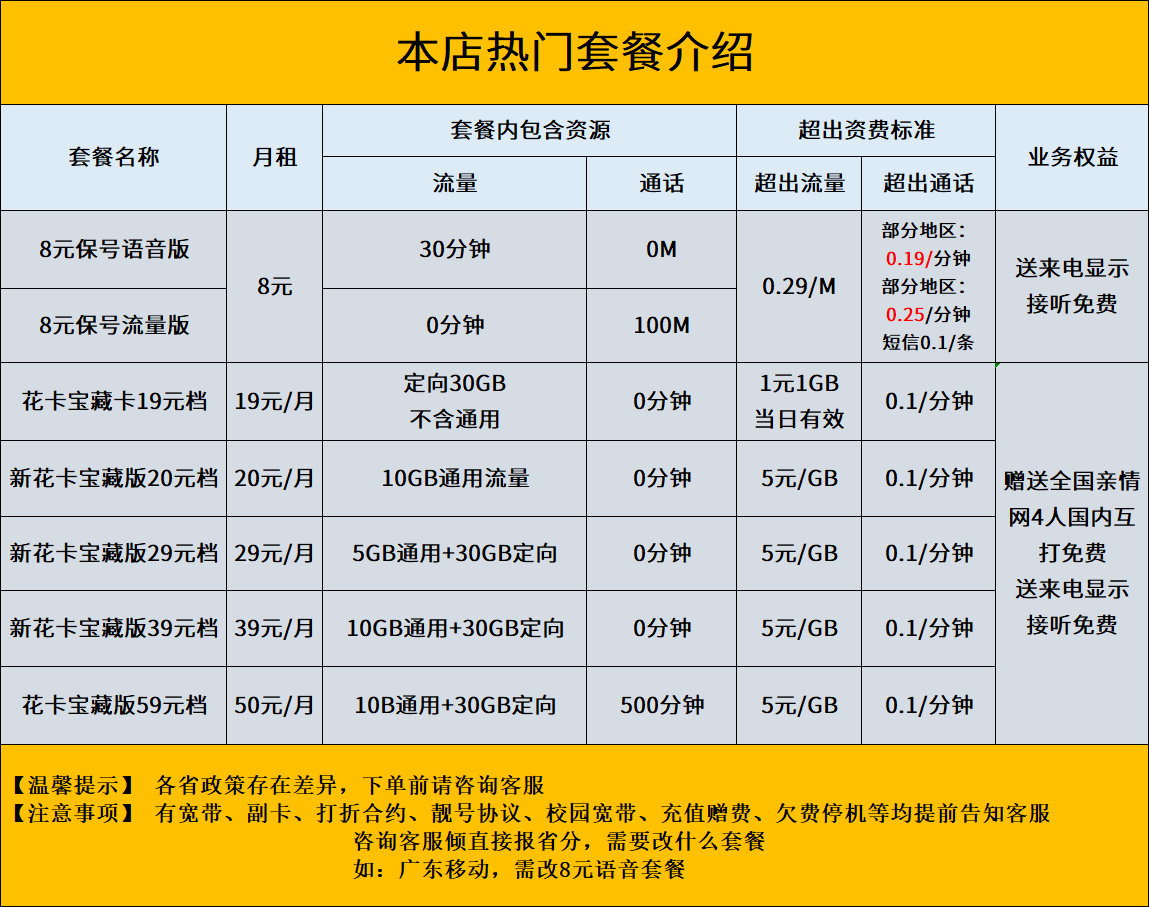 Mobile package without change of number of alteration package without change number 8 yuan to handle the warranty card treasure version