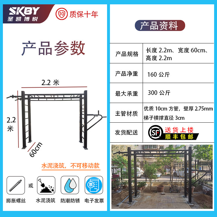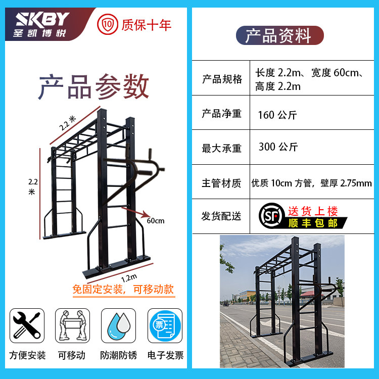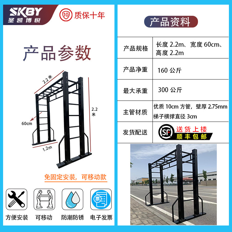 Indoor and outdoor flat ladder ladder ladder ladder single bar parallel bar ribbed wood combination climbing frame lifting ring fitness equipment pull-up