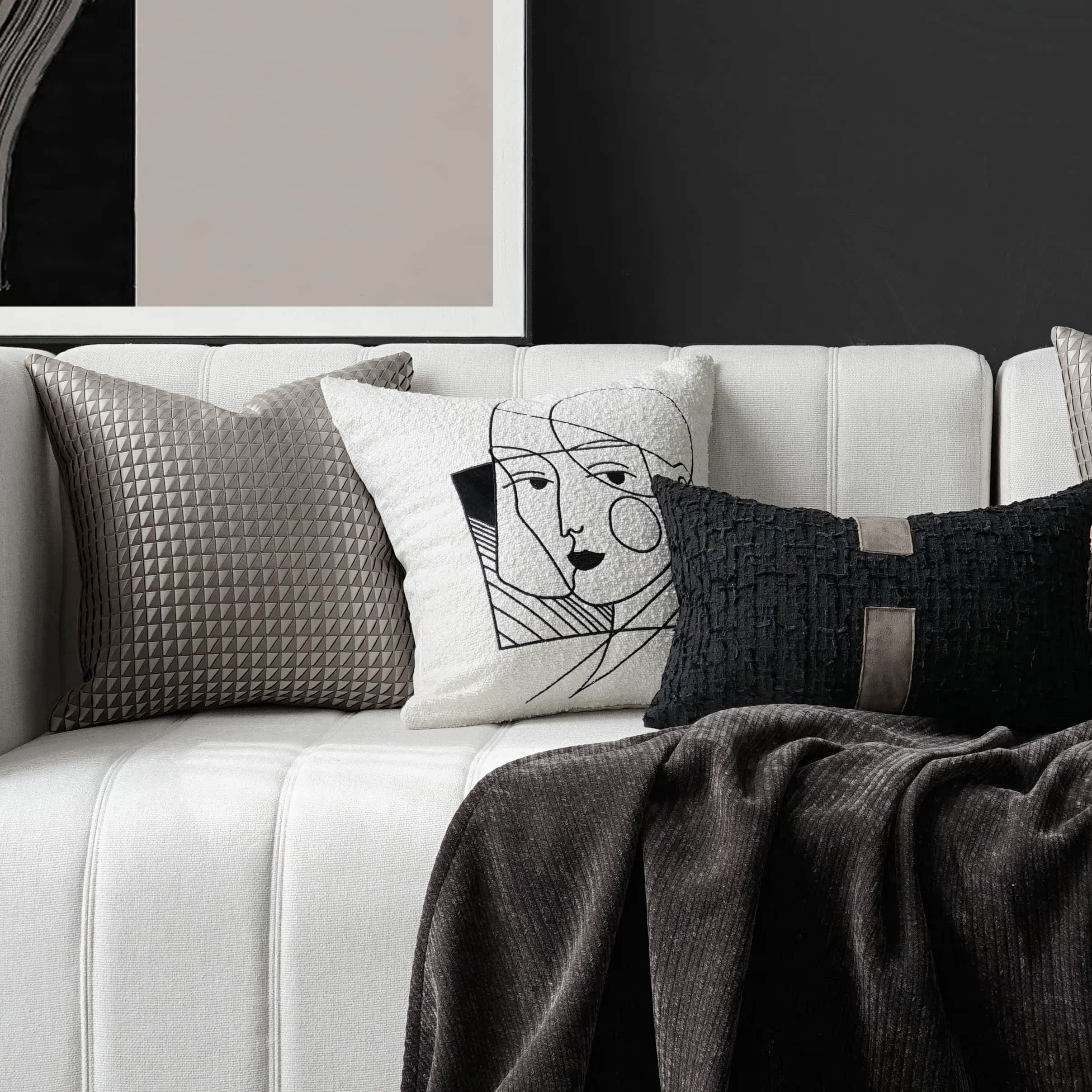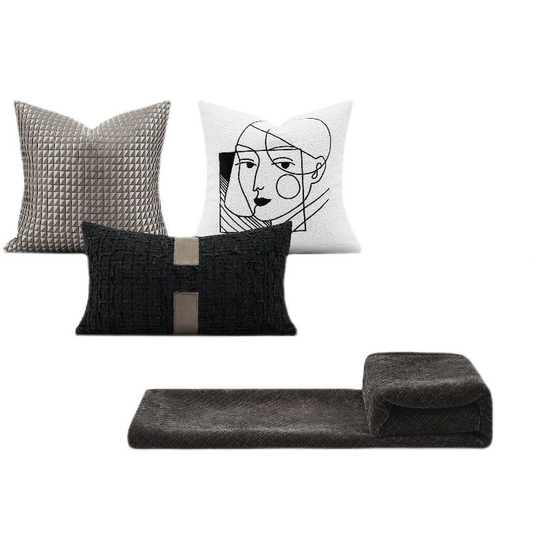 Black silver gray original model room living room sofa pillow cushion bay window hotel club soft decoration blanket