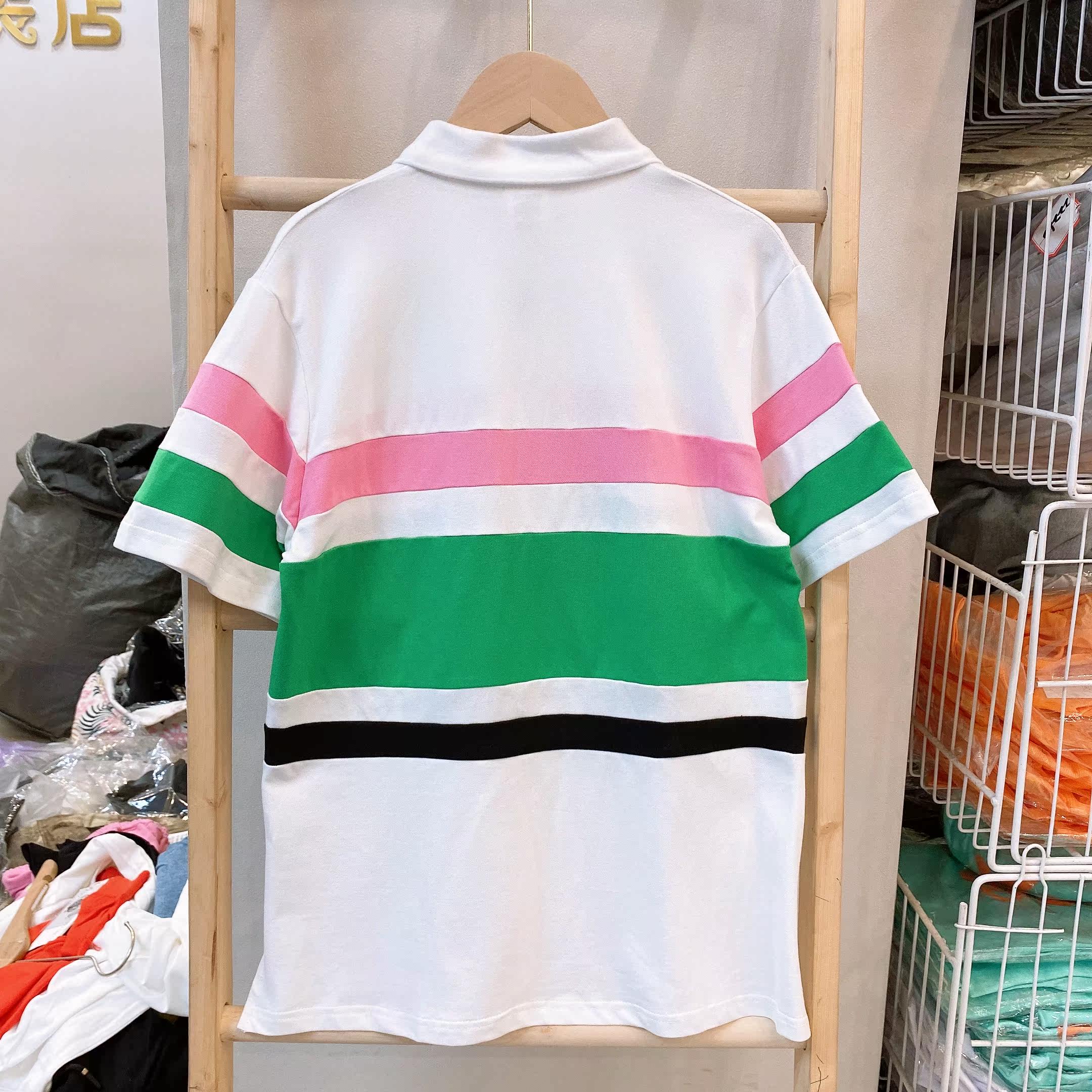Girls Korean version of the striped color contrasting color summer new big children's loose long Polo collar short-sleeved dress 12070