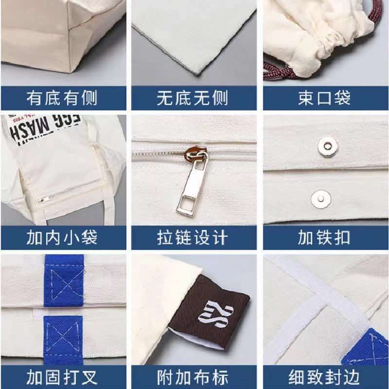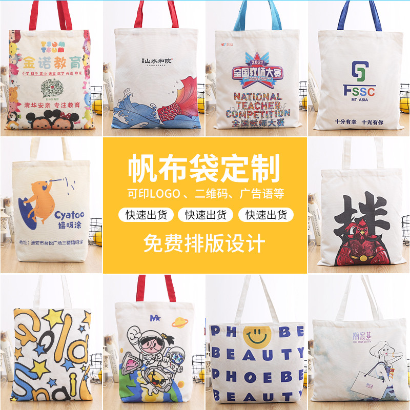 Canvas bag custom logo tote bag canvas bag custom zipper companion gift cotton cloth environmental protection shopping bag printed pattern