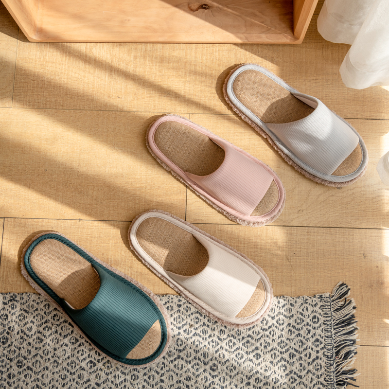 Removable toe silent four seasons lazy floor shoes men and women home breathable sweat removable bedroom slippers