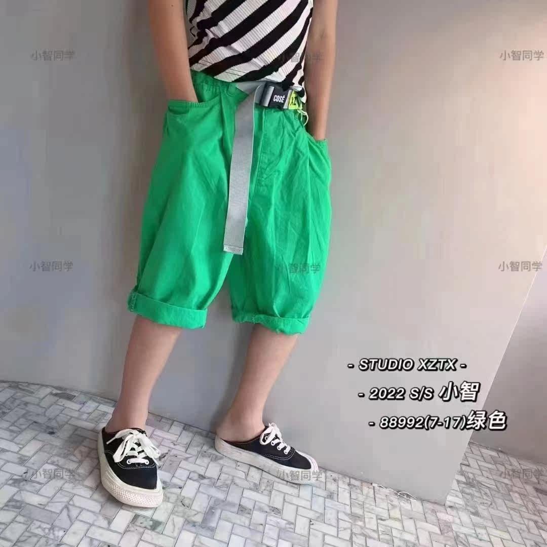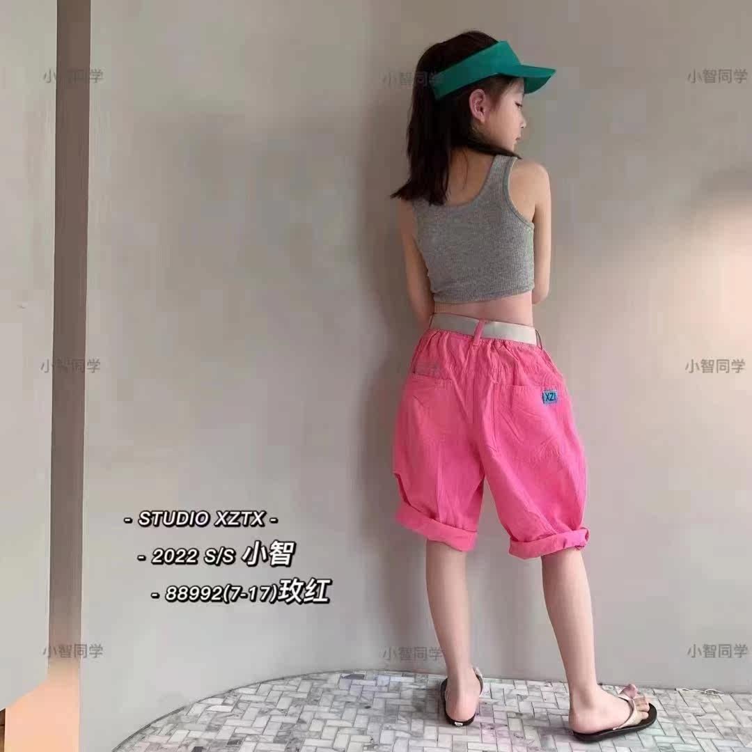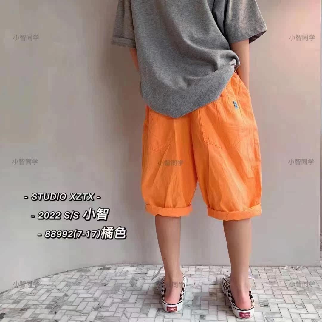 Small classmate brand children's middle and big children's summer new loose cotton color cloth thin breathable pants five-point pants 88992