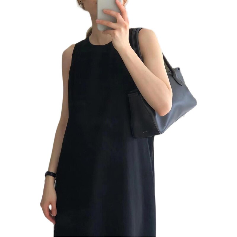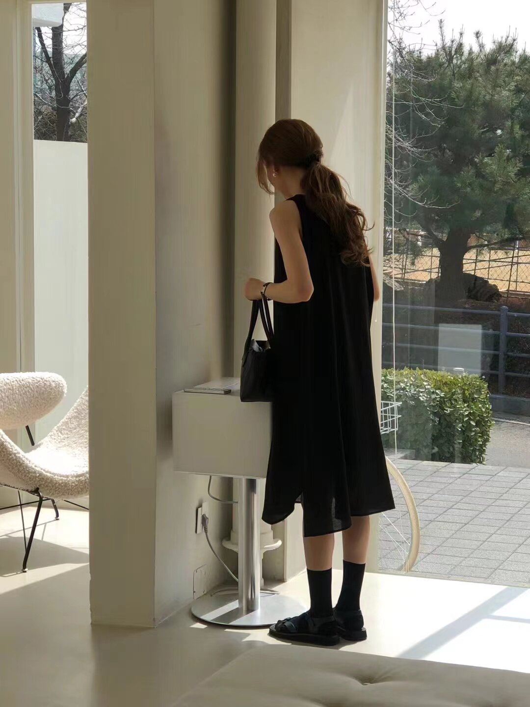 Han edition black sling dress 2023 summer new lazy wind and thin middle - long holiday dress