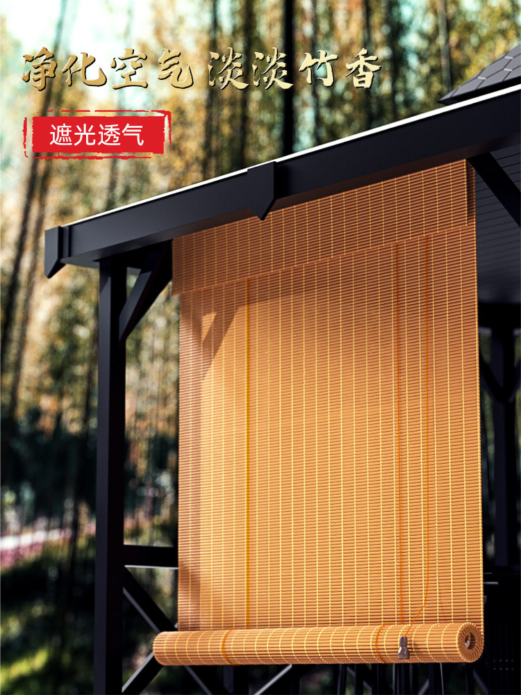 New Chinese bamboo curtain roller blinds curtains Home partition Japanese style Balcony Living Room Thermal Insulation Tea Room Hanging Painting Shade Free-Taobao