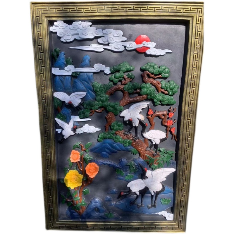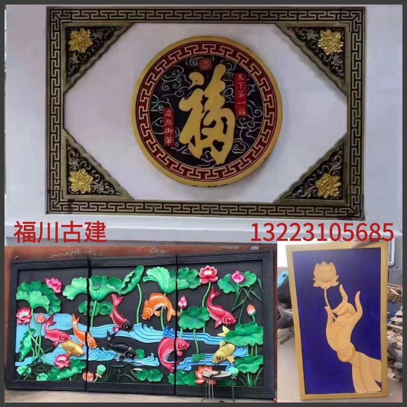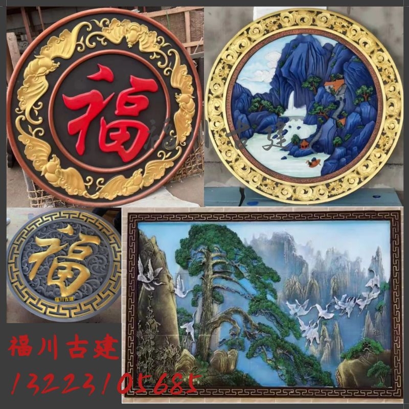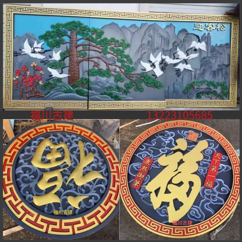 Chinese Color Painted Brick Carving Round Fu Character Relief Greet Guests Songu Build Large Shadow Wall Wall wall Wall Decorated Patio-Taobao