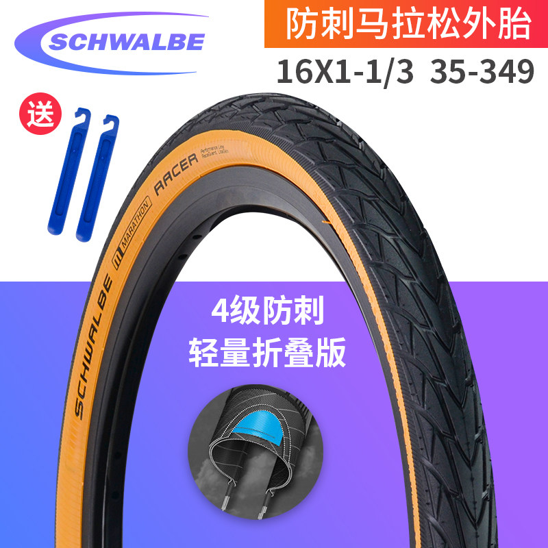 SCHWALBE MARATHON RACER Small Fabric retro yellow tire 16 inch 349 anti-stabbing tire