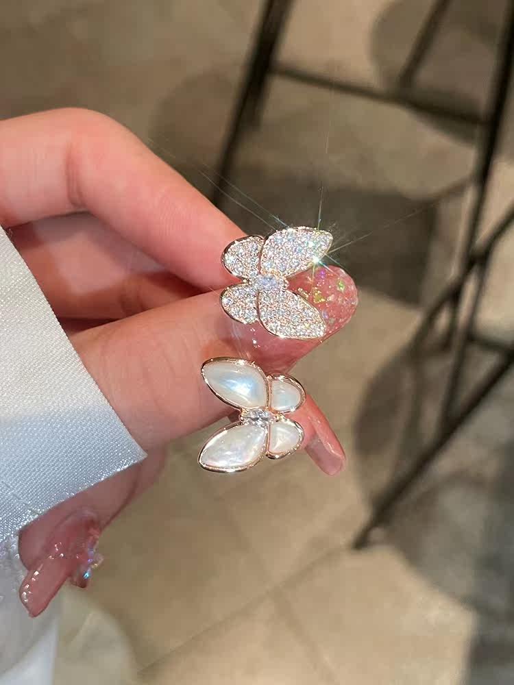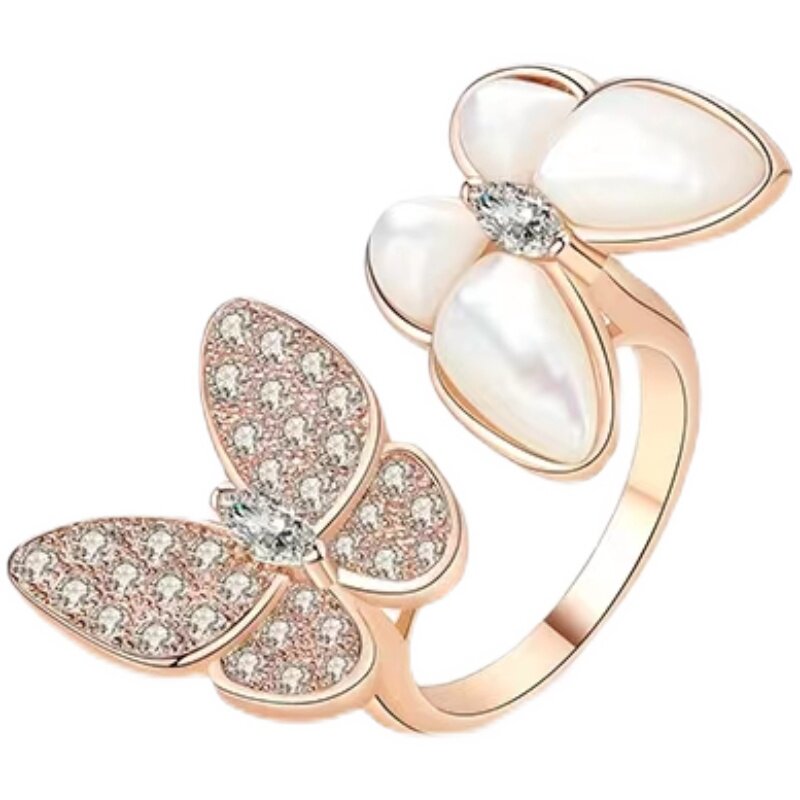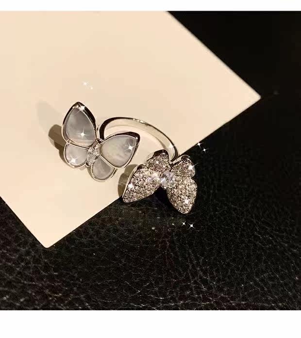 18k Platinum Super Fairy solid butterfly ring light extravagant and inlaid zircon fritillary personality small crowdsourced design ring female