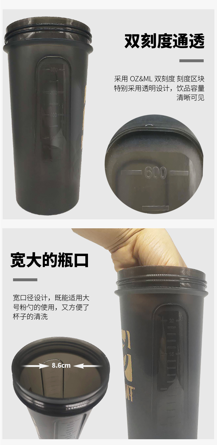 Jagged Warcraft shaker cup gym water cup large capacity with scale fitness cup cup stirring ball milkshake
