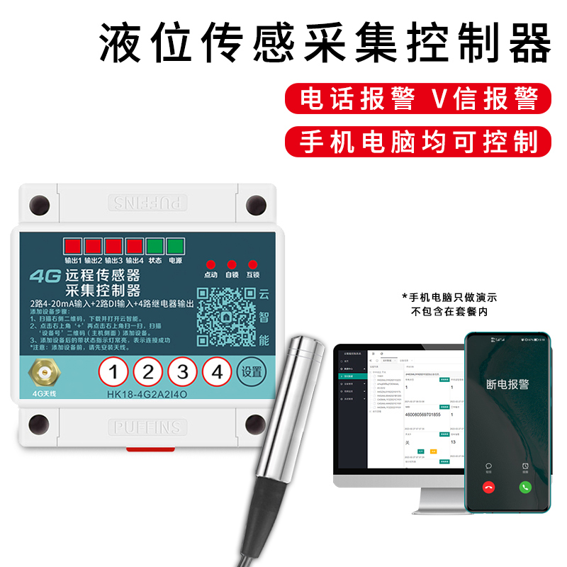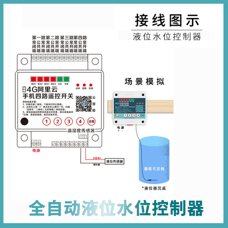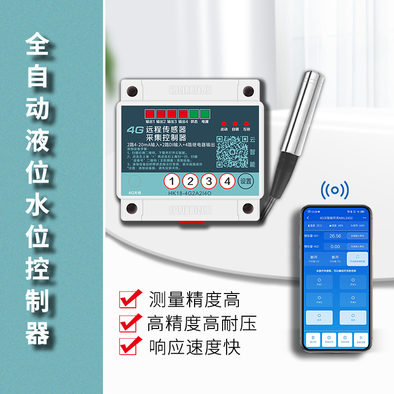 4G mobile phone remote liquid level monitoring controller fully automatic water level monitoring display alarm sensor