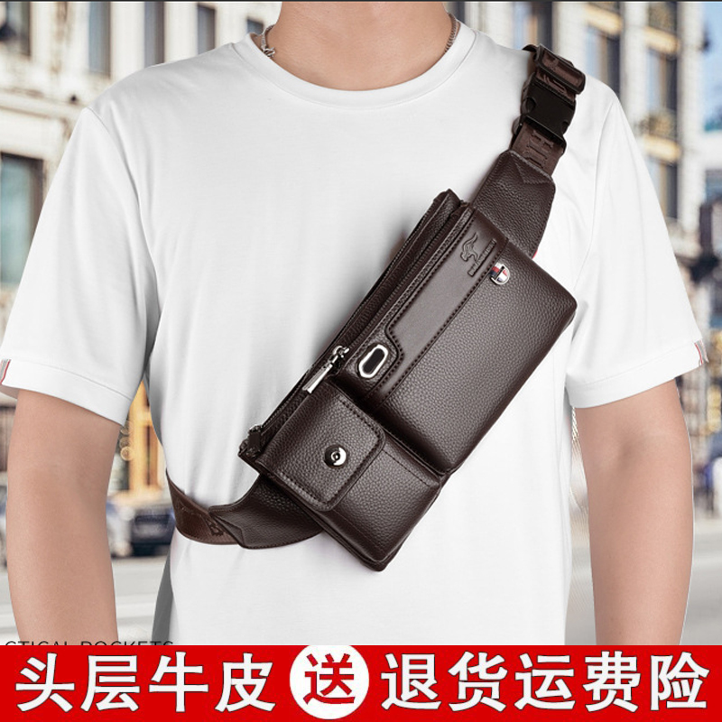 Men's bag leather skinned bag head skinned shoulder bag male 2023 new single shoulder bag tide sports backpack