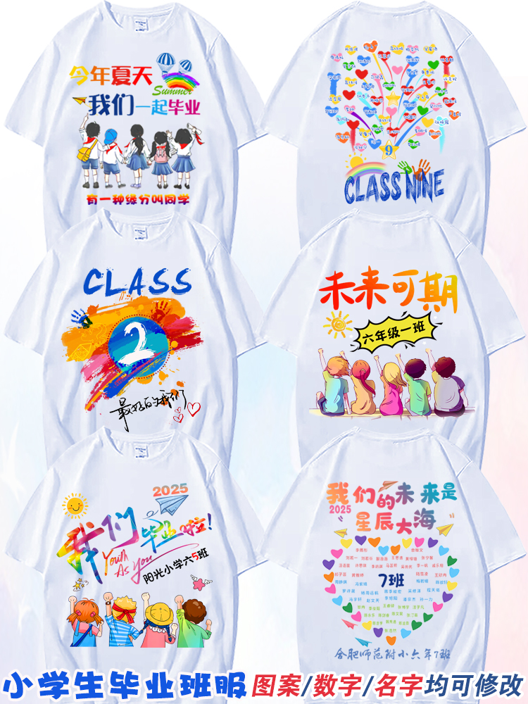 Customized T-shirt for primary school students' graduation uniforms for sixth grade junior high school graduation photos for kindergarten sports meeting pure cotton cultural shirt