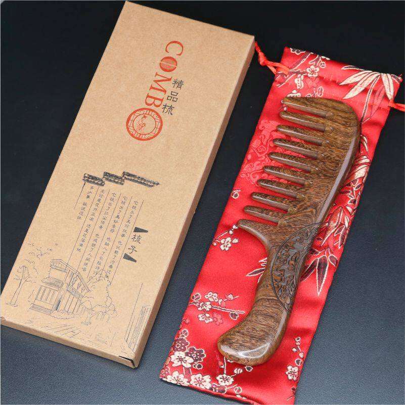 Comb culvert large wide tooth comb natural sandalwood comb ladies curly hair comb static meridian massage comb hair loss home