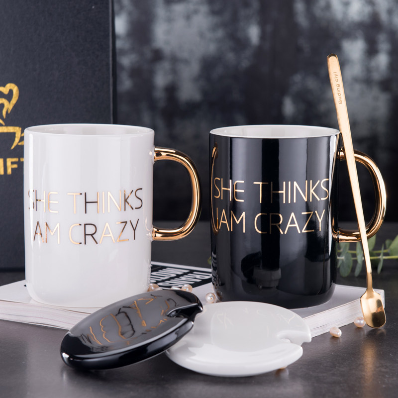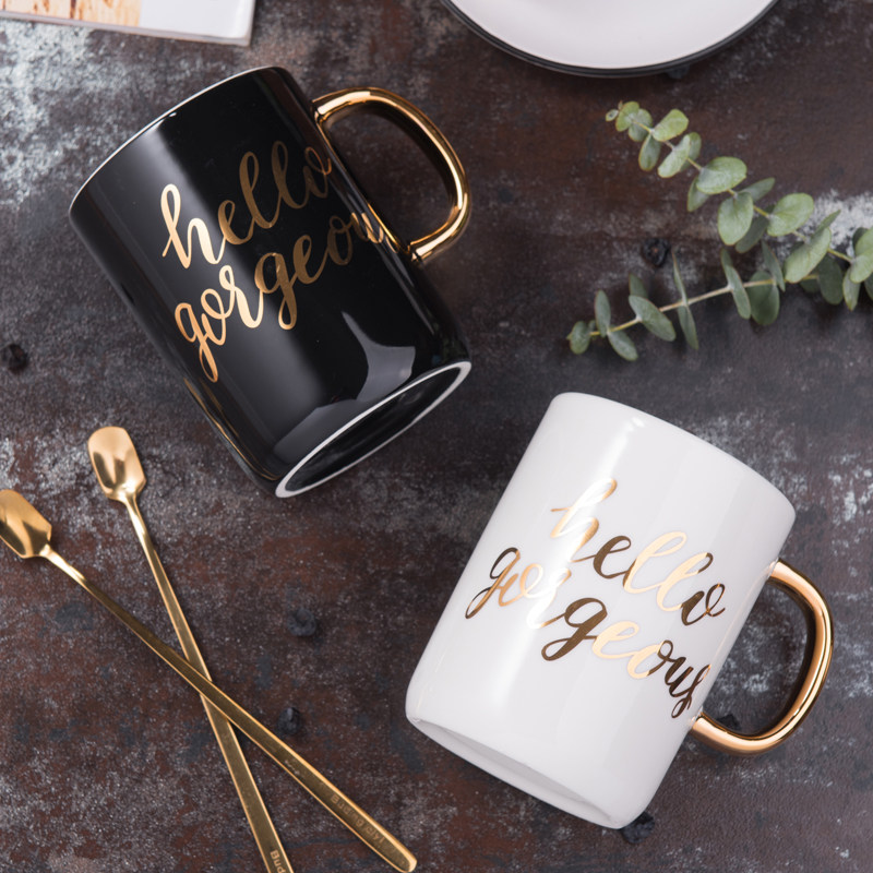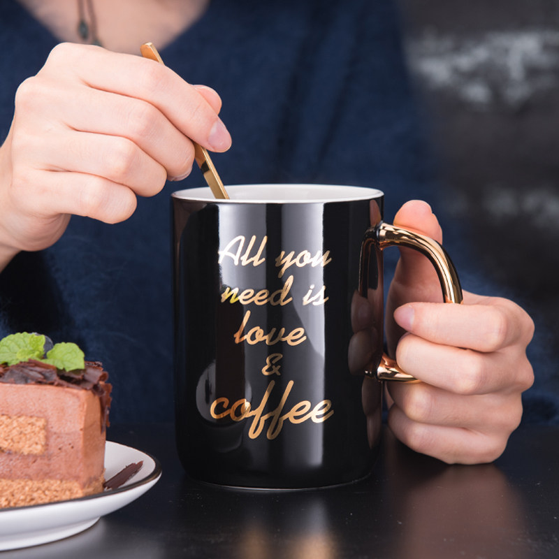 Creative letter ceramic water cup household large-capacity mug office tea cup student coffee cup couple pair cup