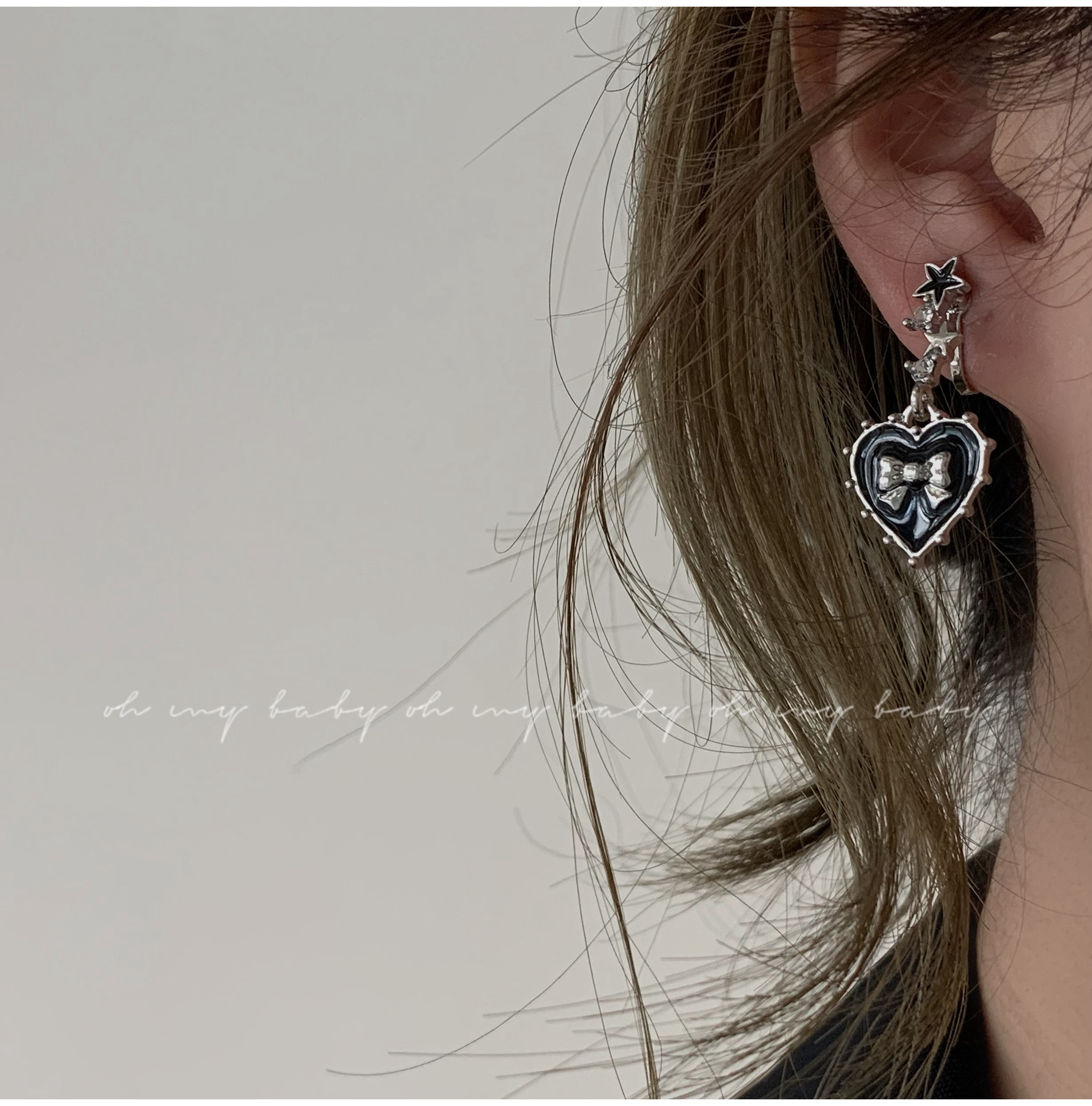 Bear star pendant love bow diamond ear pin triangle ear clip long version asymmetric cute sweet cool student