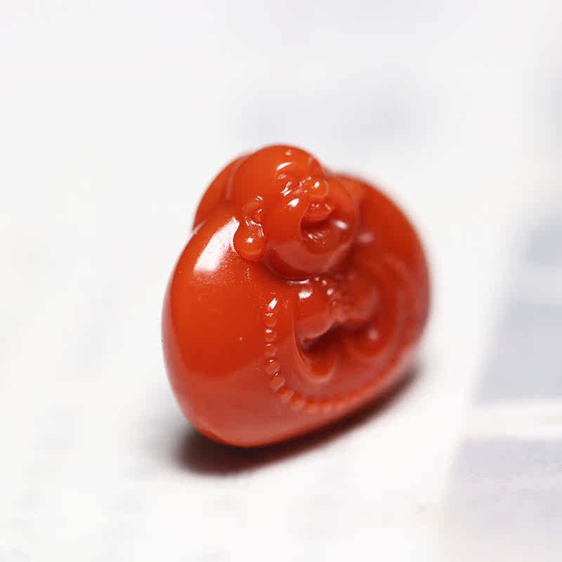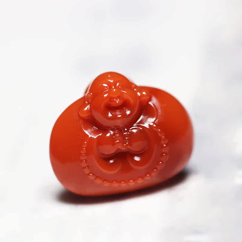 Raw ore south red agate wasi material Maitreya Buddha laughing Buddha pendant pendant Sugong famous color red full of flesh full color