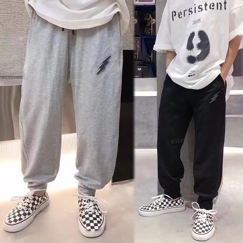 Little classmate children's clothing spring and summer models middle and big children's gray cotton elastic thin knitted pants sports pants for boys and girls 2237