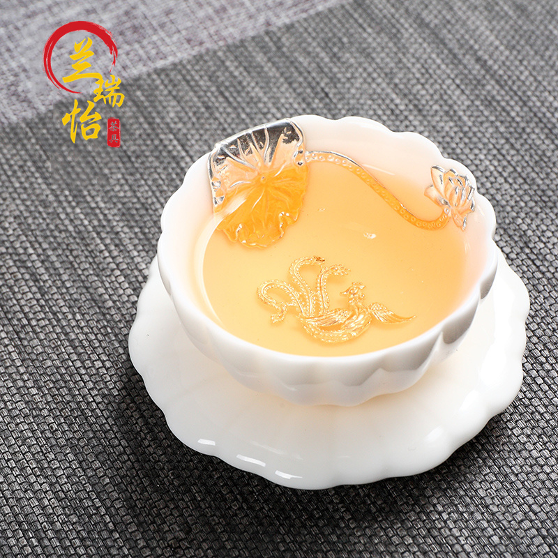 White ceramic sunflower cup silver fish (cup cup mat) White ceramic sunflower cup lotus (send cup mat) White ceramic sunflower cup silver (send cup mat) White ceramic sunflower cup gold toad (send cup mat)