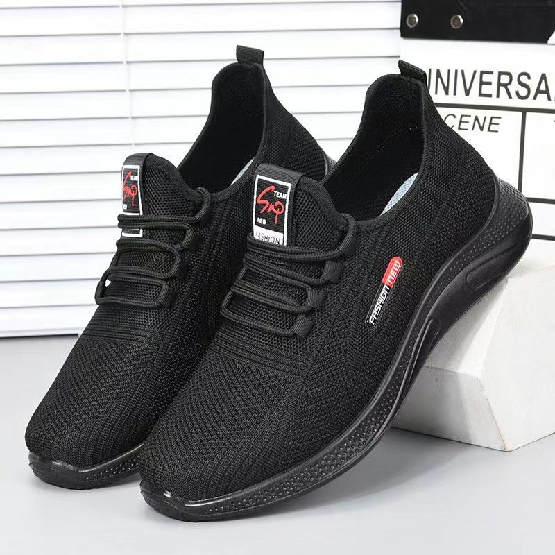 New Large Size 50 Sports Casual Shoes Fly Woven Polyurethane Youth 48 Plus Size Mesh Breathable Black Men's Shoes