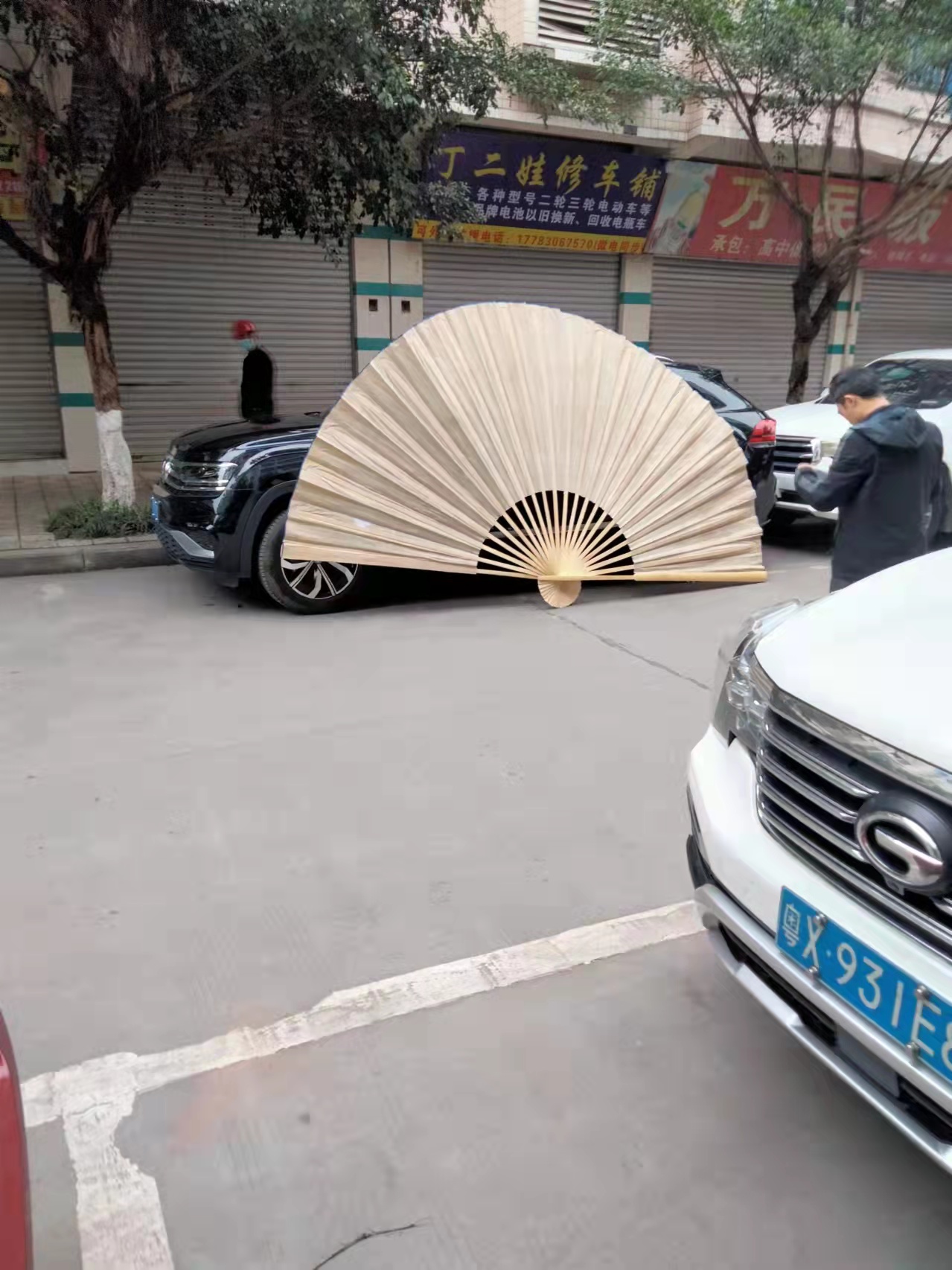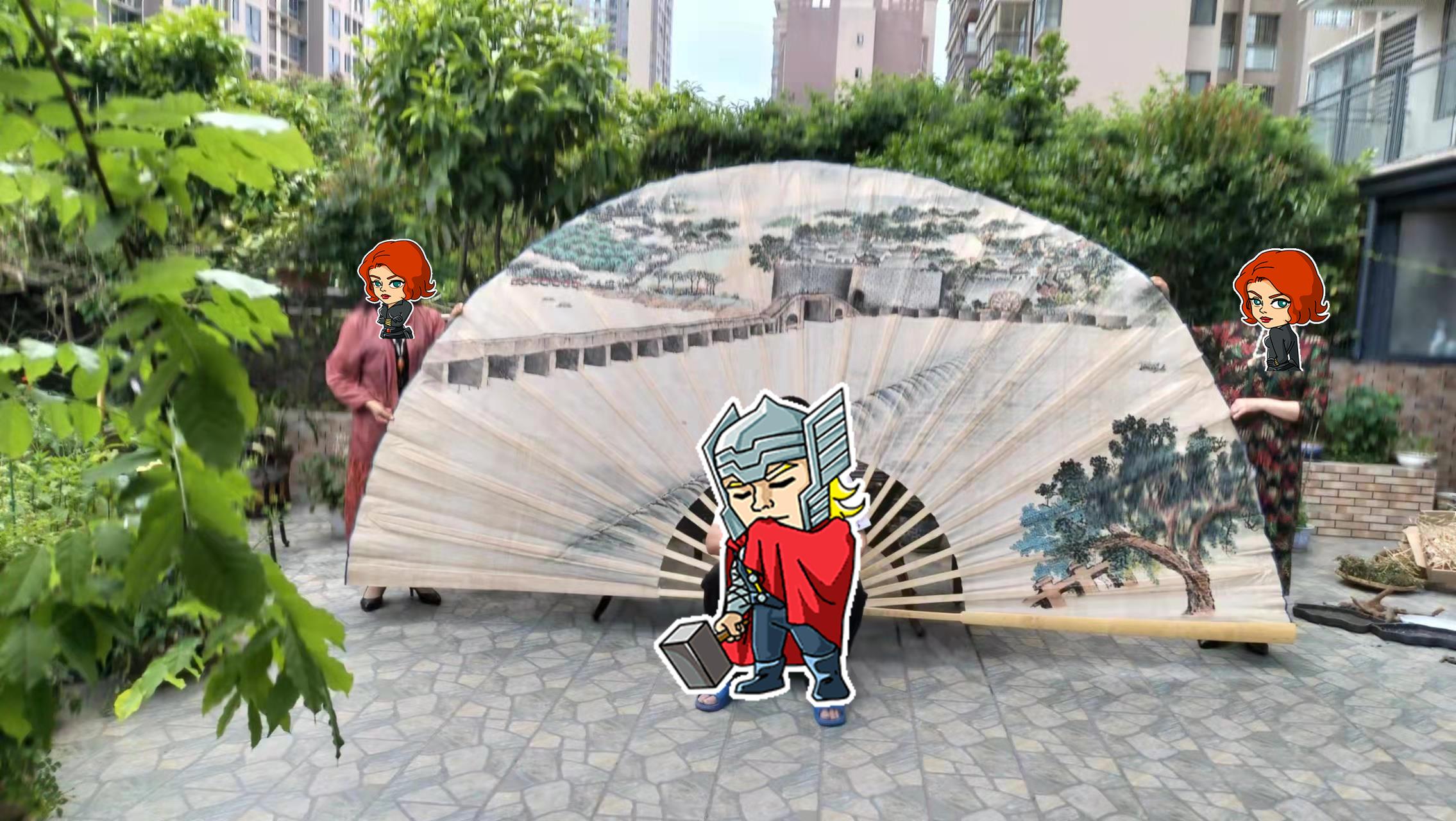 Customized Rong is a grass cloth large hanging fan folding fan for decoration and exhibition