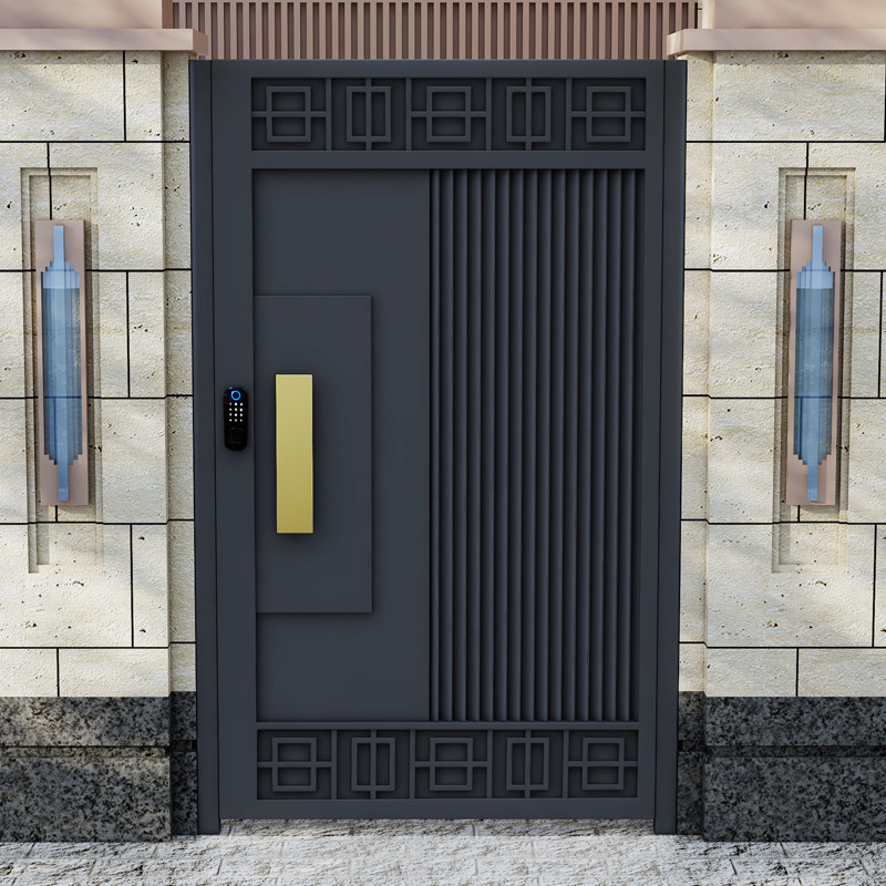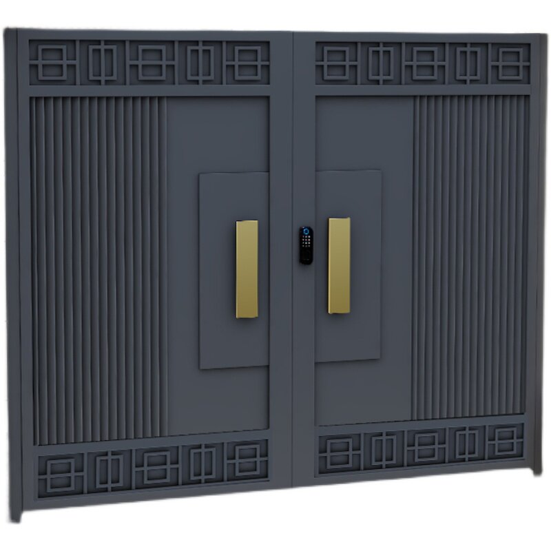 New Chinese-style light luxury villa courtyard door iron art rural household shutter door stainless steel single and double switch door aluminum art