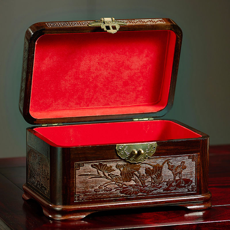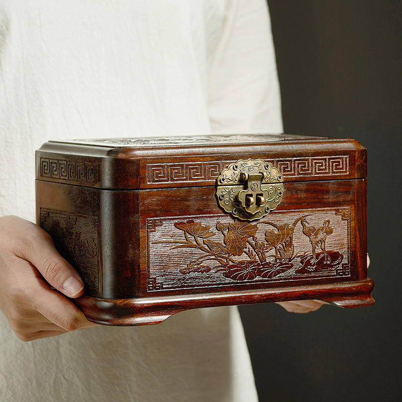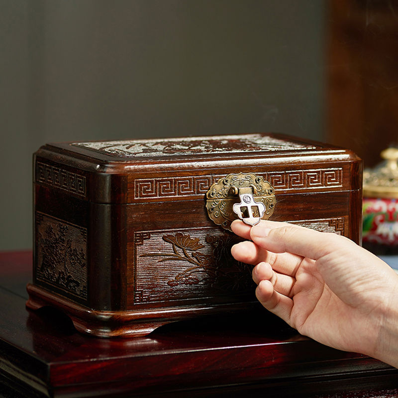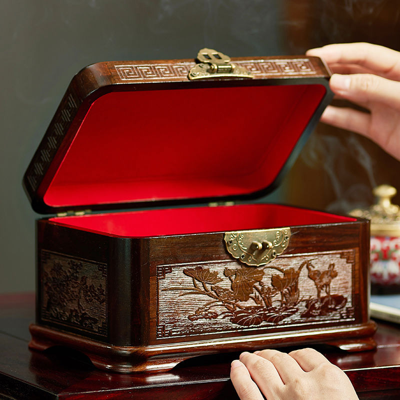 Jewelry box with lock high-grade small leaf red sandalwood solid wood Chinese mahogany dressing box small wedding dowry wooden storage box