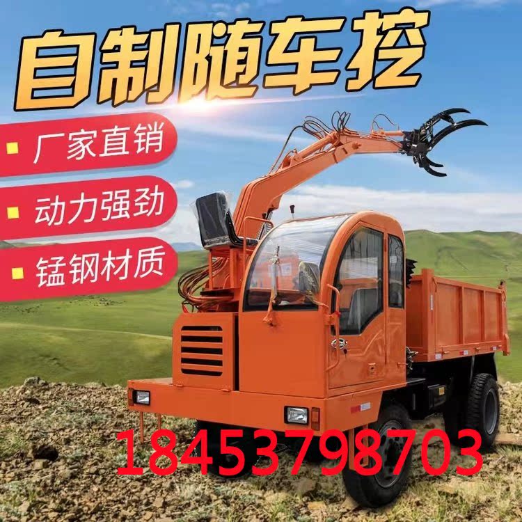 Four unlike agricultural diesel four-wheel drive plus excavator crane caught wood burial car in rural areas