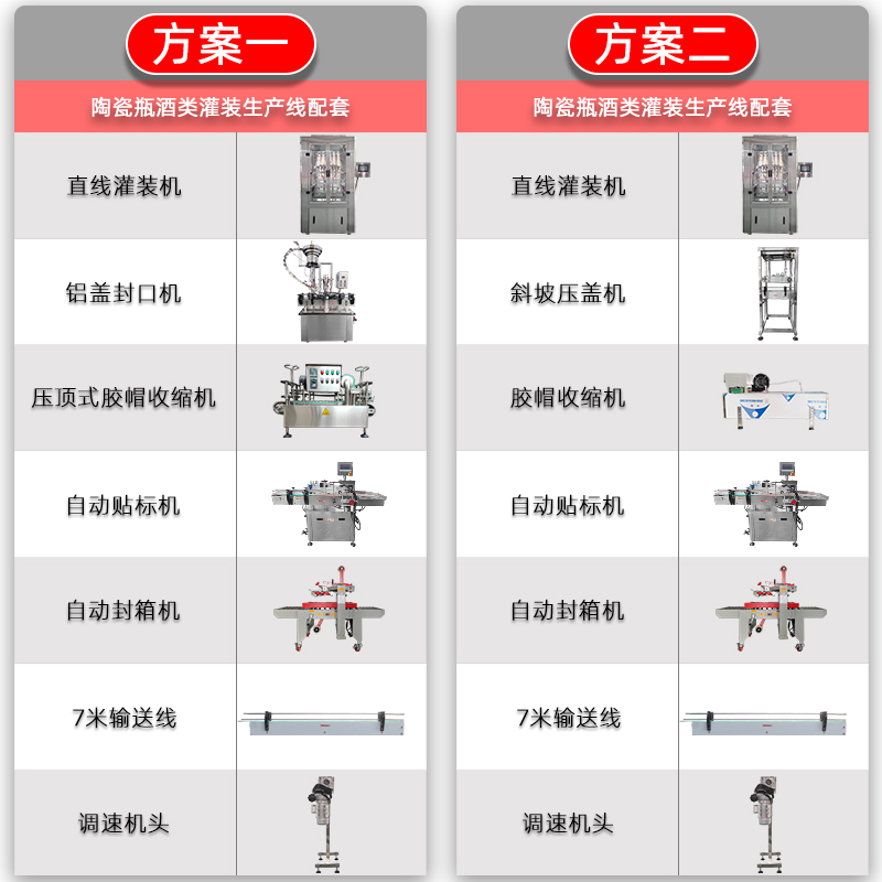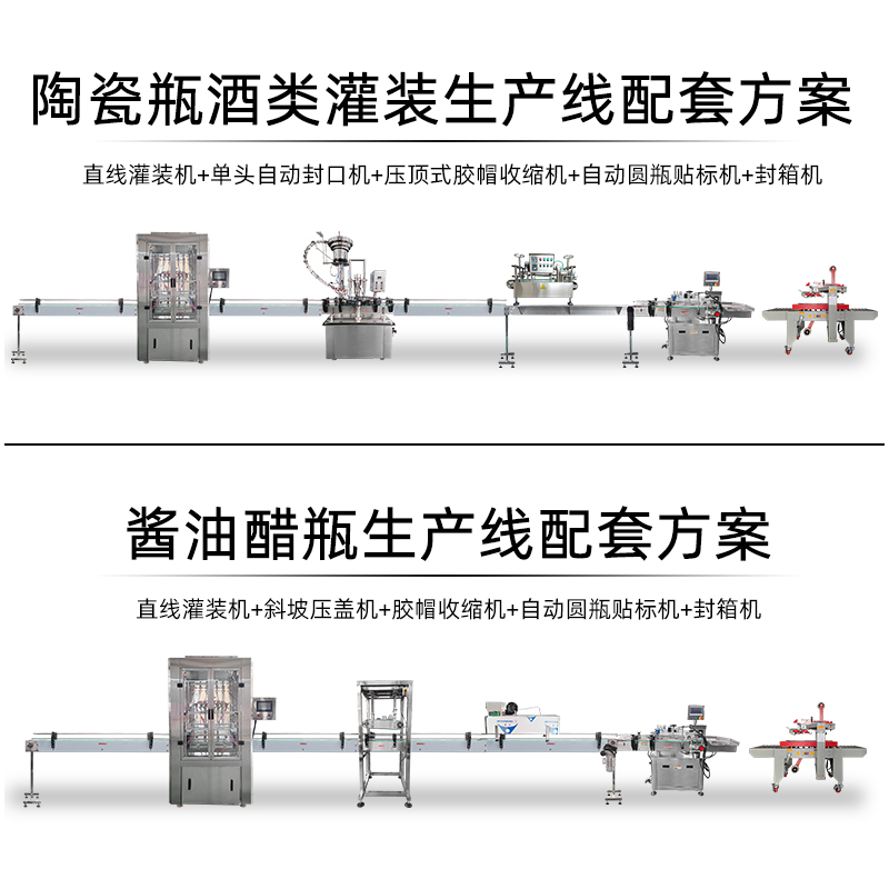 2-head filling machine 800 bottles per hour 4-head filling machine 1200 per hour 6-head filling 1800 per hour Moutai manual capping and screwing machine Moutai automatic cap unscrambling machine Moutai pressure top rubber cap shrink
