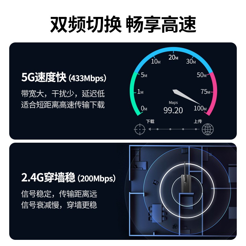 Green Union USB wireless network card 5G dual frequency 650M free of driving WiFi wireless receiver computer host transmitter