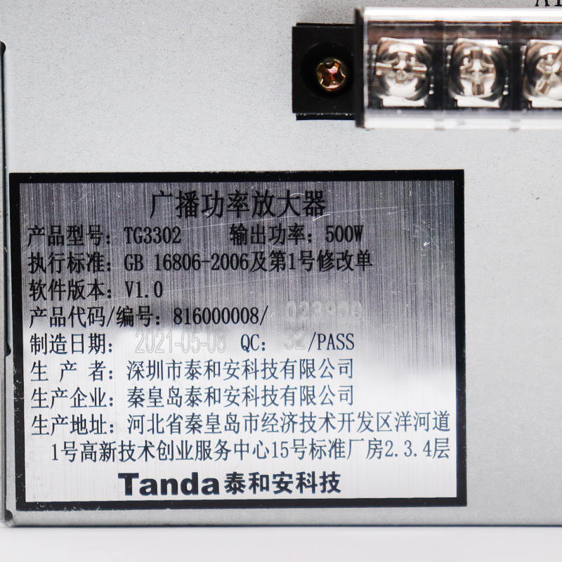 Lanyan Taihe'an fire telephone broadcasting equipment power amplifier TG3302 500W fire fighting equipment