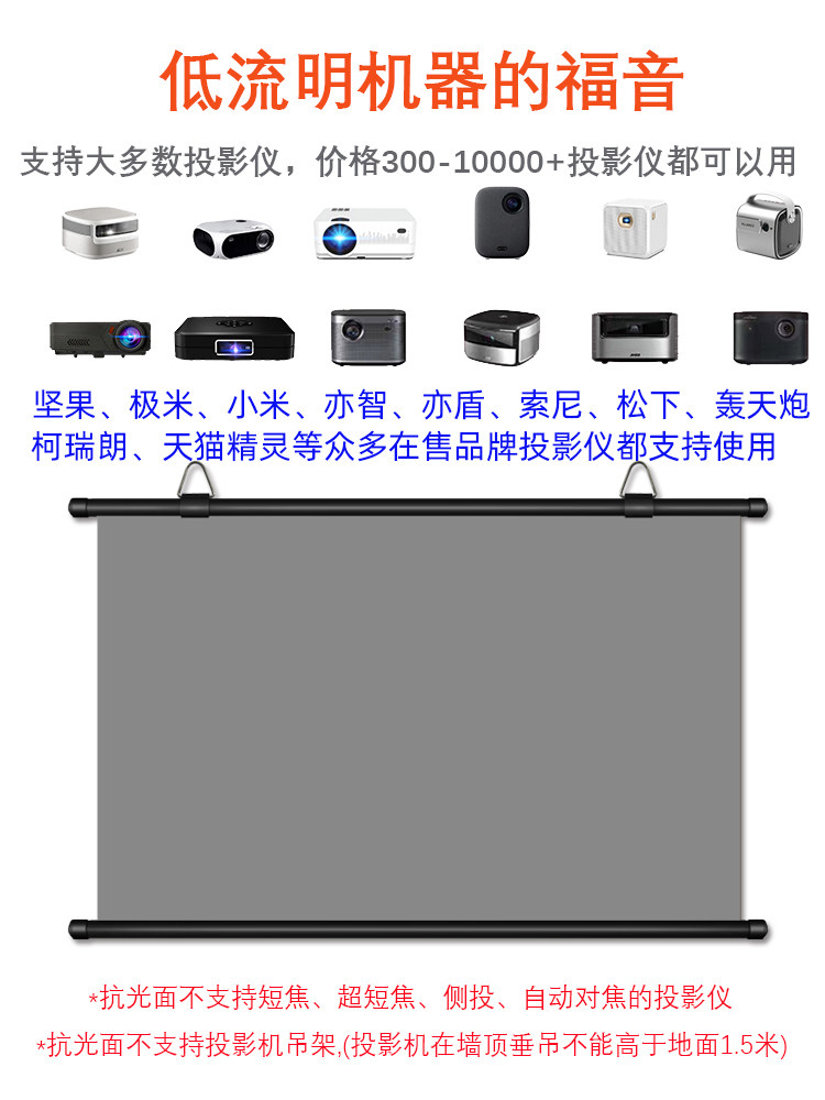Type Dreams Customised Anti-Light Curtain Wall Hooks Free of punching Easy 80 inch 106 inch 110 inch office Business projectors daytime high-definition portable projector hooks Wide screen open air cinema Film-Taobao