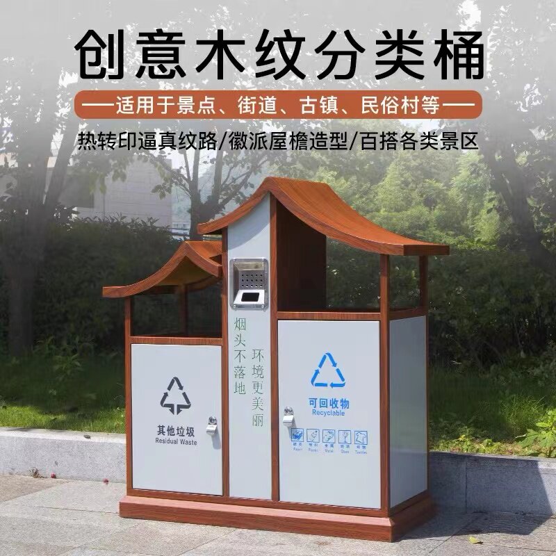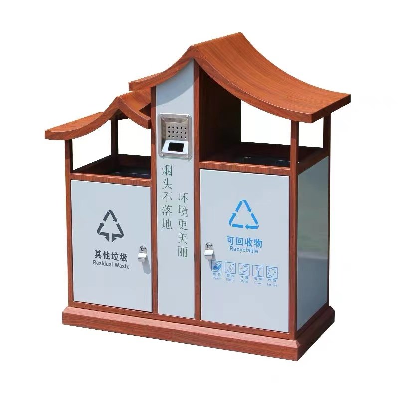 Green Retro eaves outdoor garbage cans stainless steel metal dustbin outdoor neighborhood property sanitation fruit suitcase
