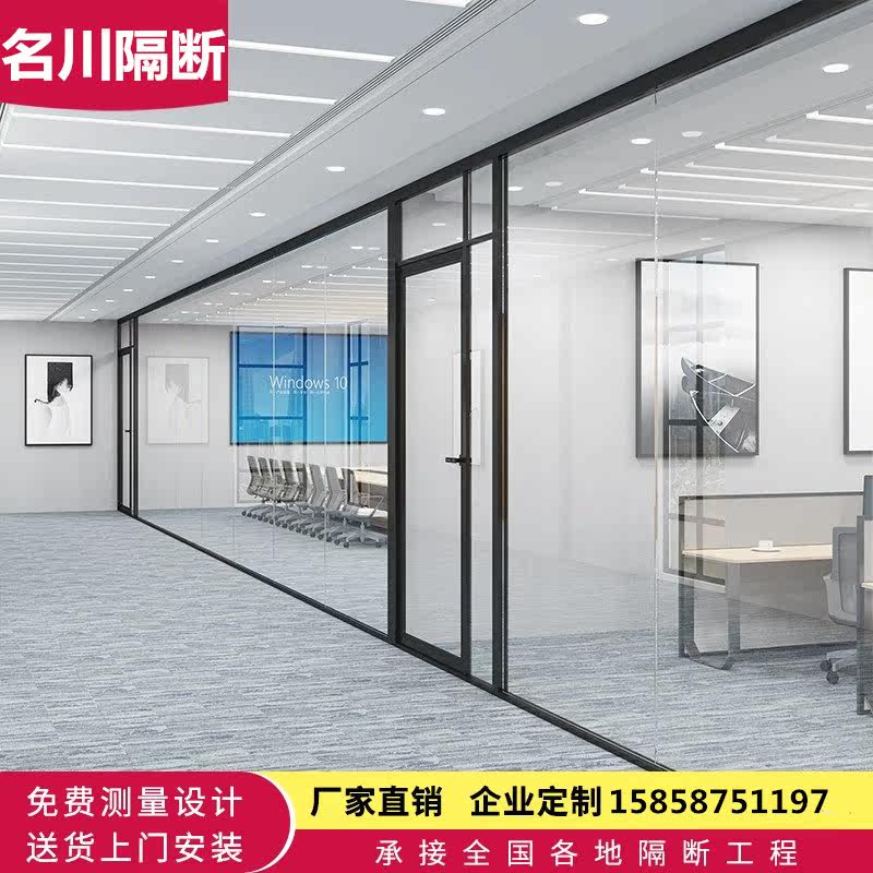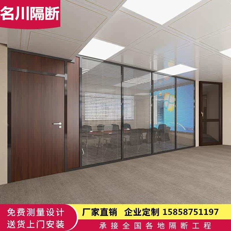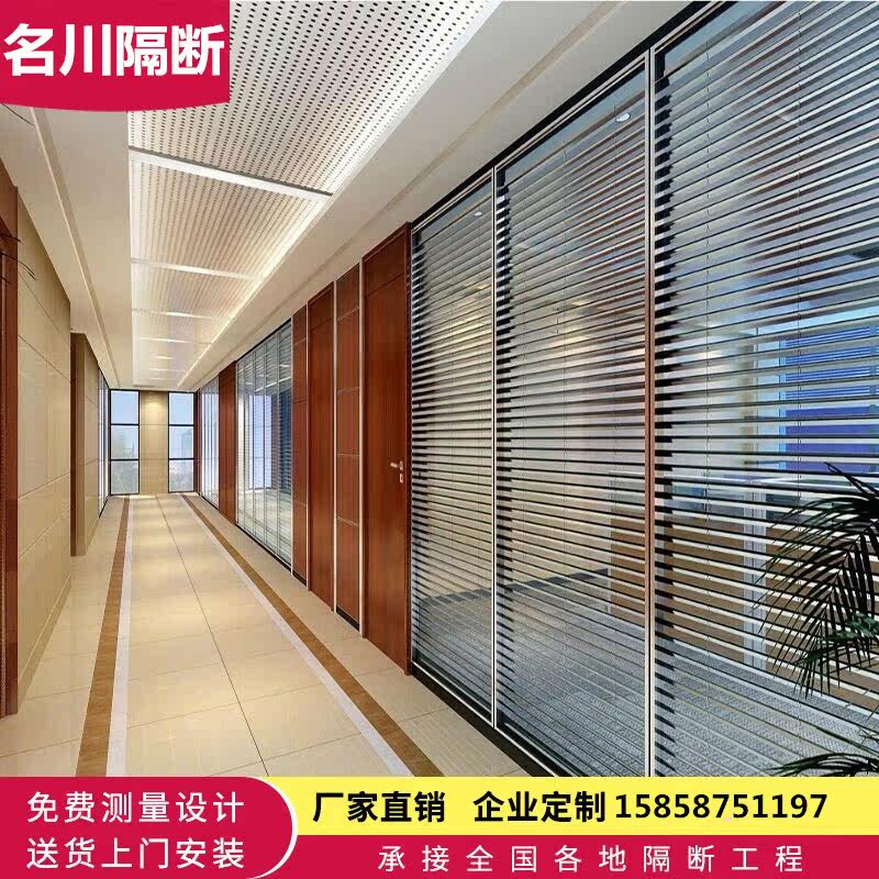 Dongguan Shenzhen office glass partition wall aluminum alloy hollow built-in louver tempered frosted screen high partition