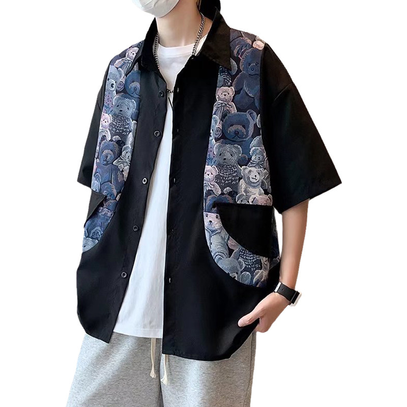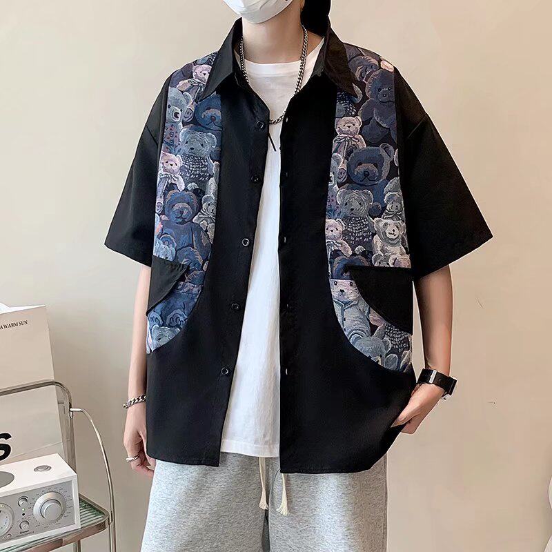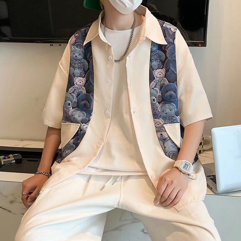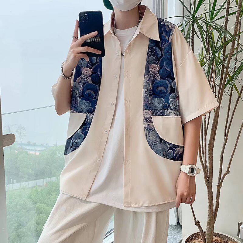 National Tide Cubs Splicing Fake two shirts Men's short sleeves Chauded summer slim fit jacket top half sleeves Shirt Casual
