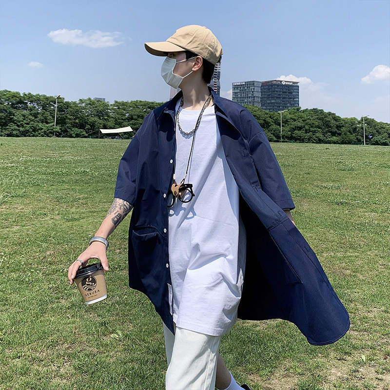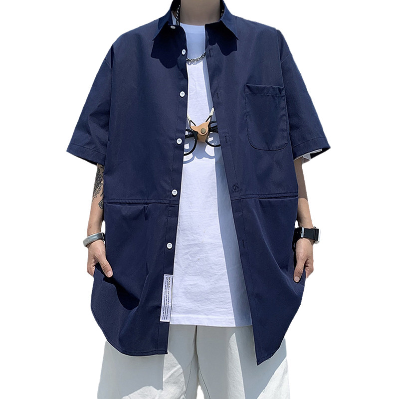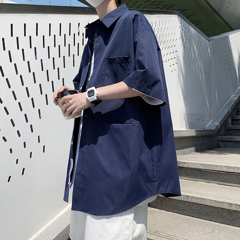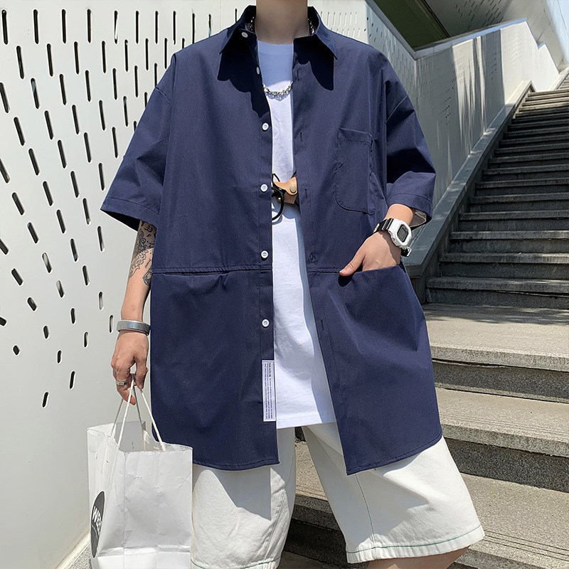 Hong Kong style ruffian handsome shirt men's short-sleeved jacket summer thin section loose casual Japanese large size tide brand shirt five-point sleeves