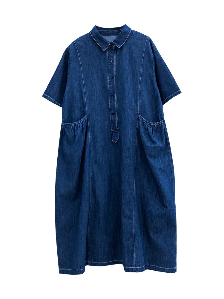 Dark blue_Hong Kong style high-end denim skirt Dark blue_fan pleated half-button denim skirt Light blue_fan pleated half-button denim skirt