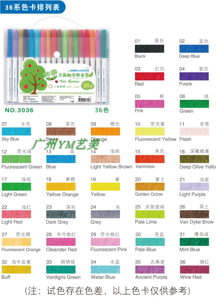 Lion color pen triangle branch 36 color watercolor brush 24 color painting children's pen suit 12 color children's brush