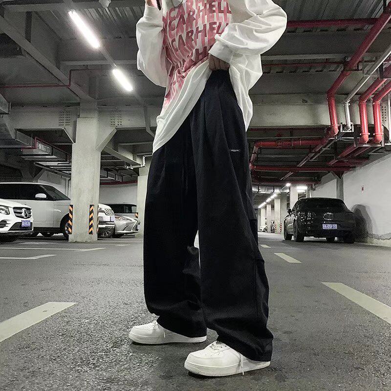 Japanese wide leg pants boys American retro loose casual mopping trousers tide brand ins trend all-match overalls
