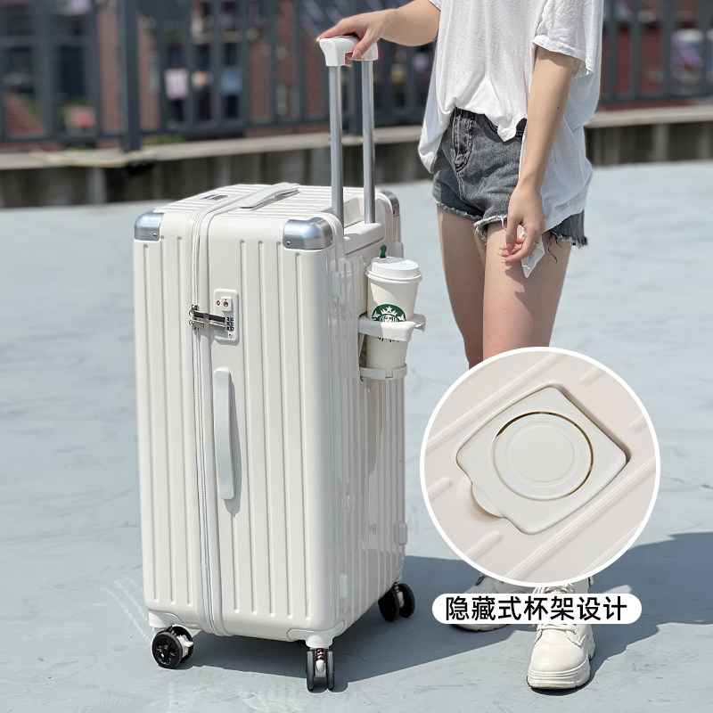 Large-capacity PC suitcase female universal wheel trolley male password travel leather case shock-absorbing brake wheel with cup holder
