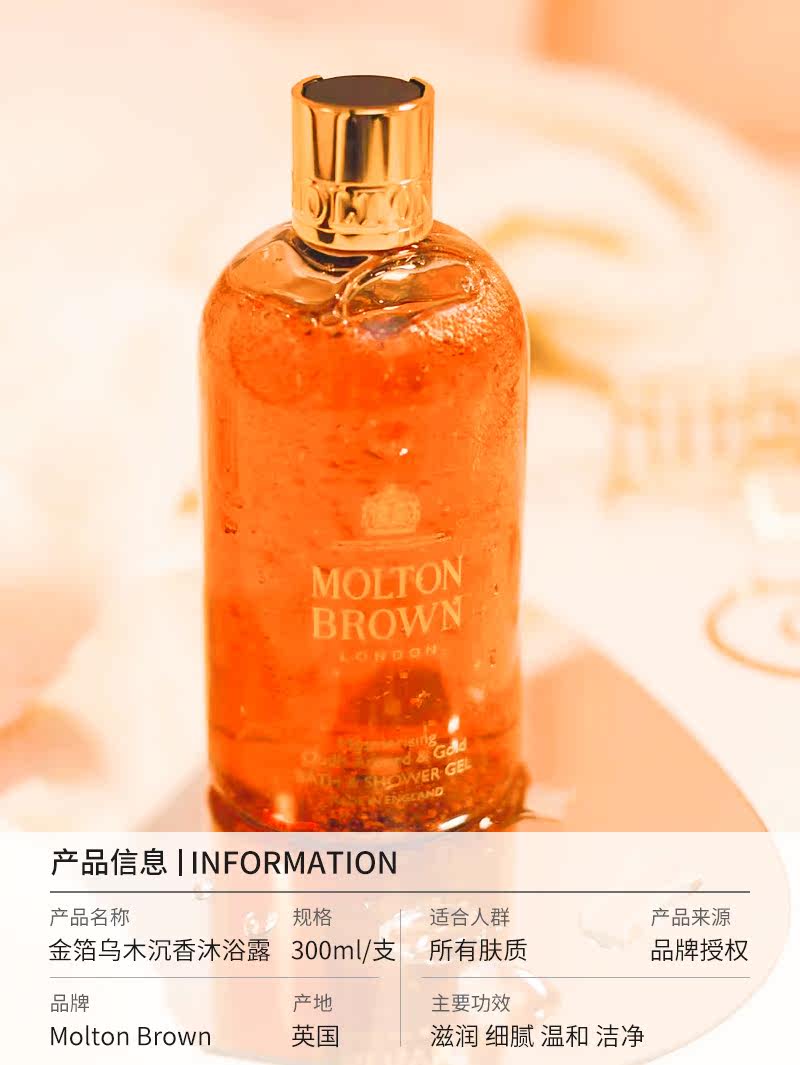 British Molton Brown Morton Brown gold foil Umwood immersive body lotion with persistent fragrance 300ml