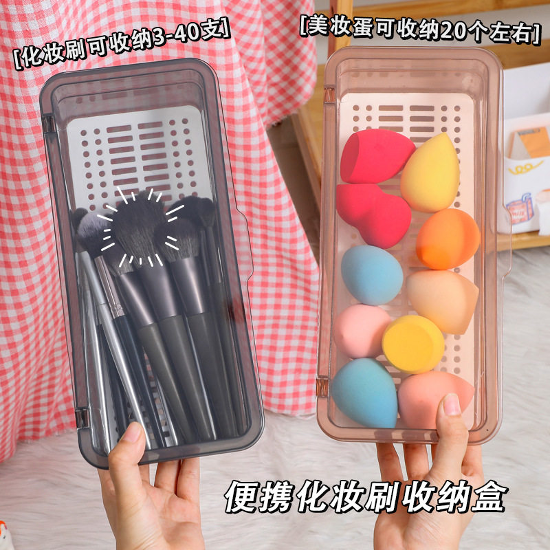 Desktop large-capacity dust-proof belt cover makeup brush storage box portable transparent eye shadow makeup table beauty egg storage bucket