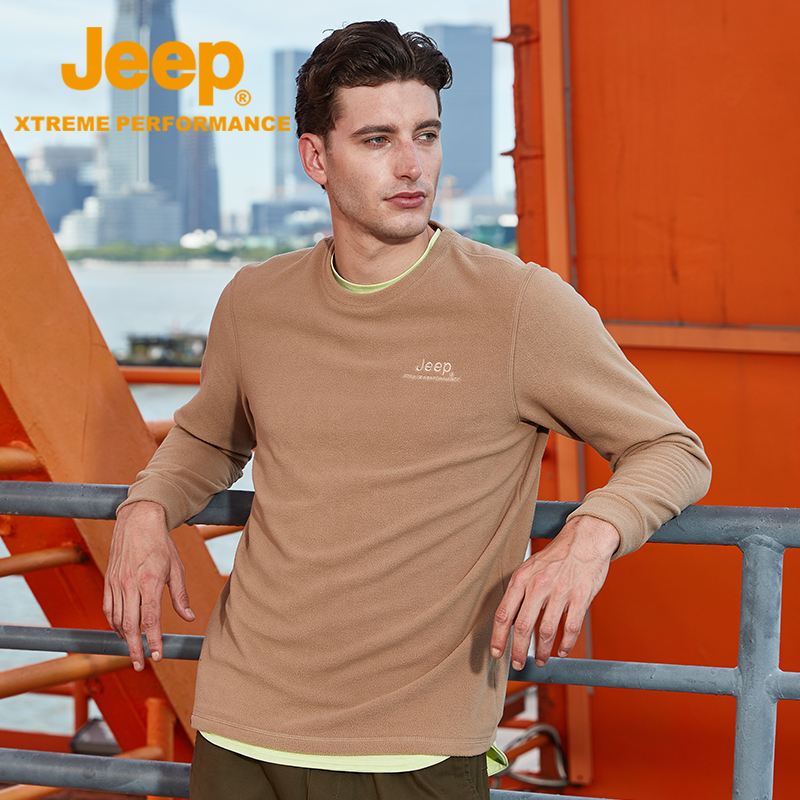 jeep catch suede jacket male autumn winter new round collar long sleeve T-shirt men shake grain suede warm beating undershirt large size sweater