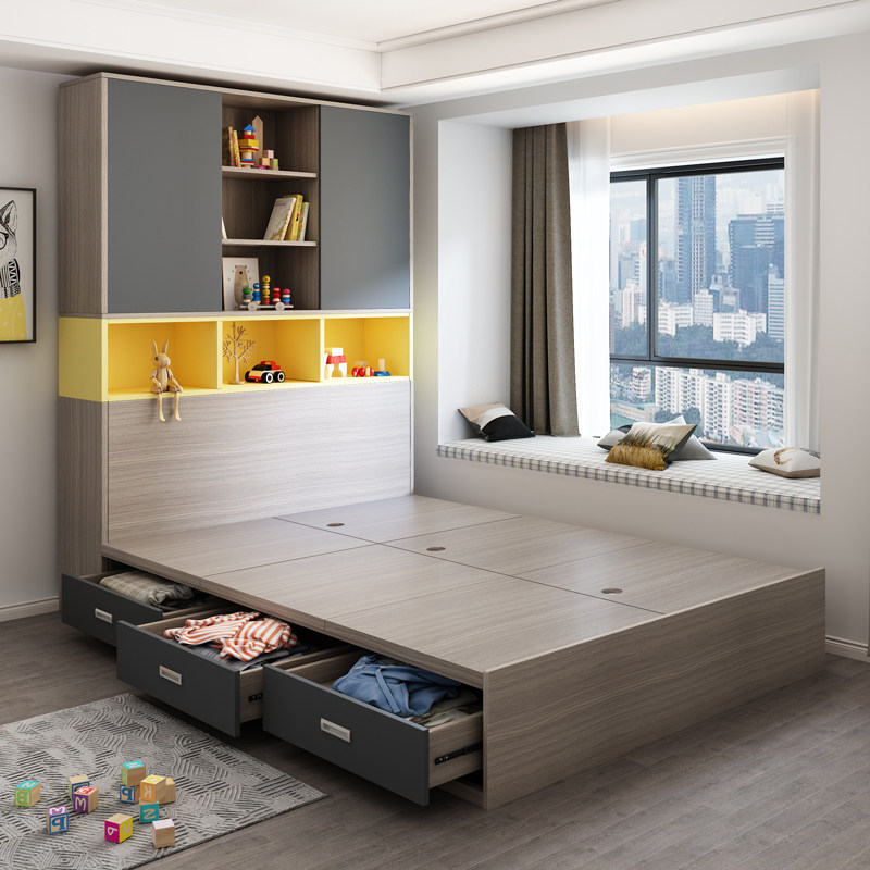 Nordic bedroom bay window tatami bed wardrobe bed one floor balcony tatami small apartment second child children's room