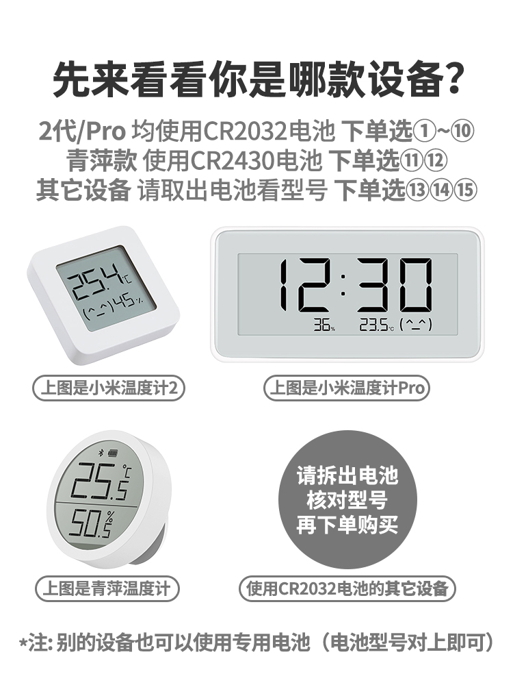 Suitable for Xiaomi thermometer battery Mijia Bluetooth electronic indoor temperature and humidity meter 2Pro special button battery-Taobao
