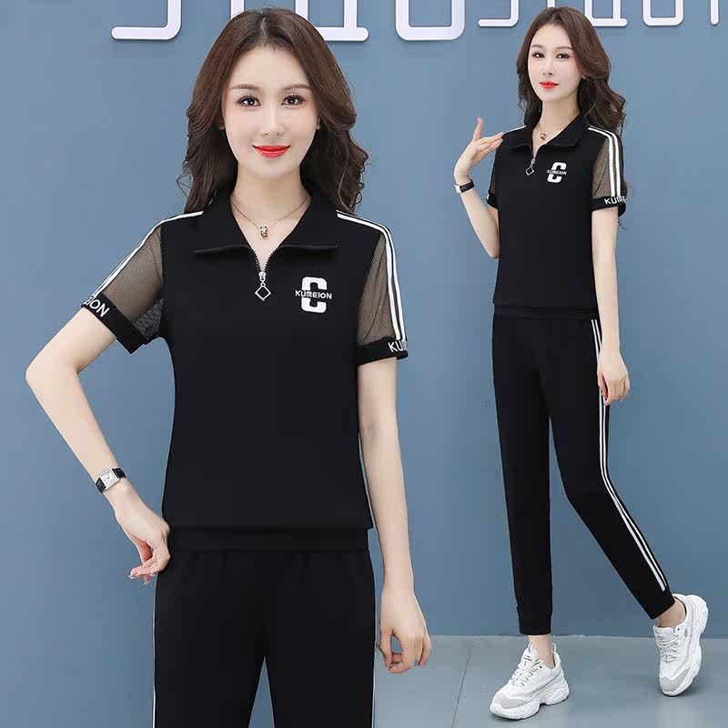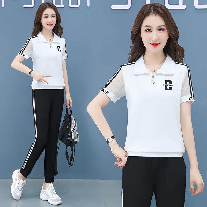 polo shirt female mom casual fashion sports lace suit summer 20221 new square dance two-piece suit