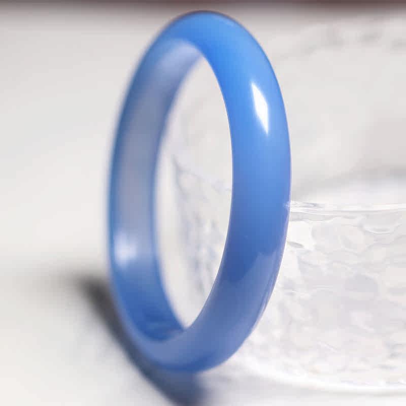 Natural raw ore blue chalcedony boutique bracelet Sugong carved blue full product clean and transparent without impurities and cracks ring mouth 56