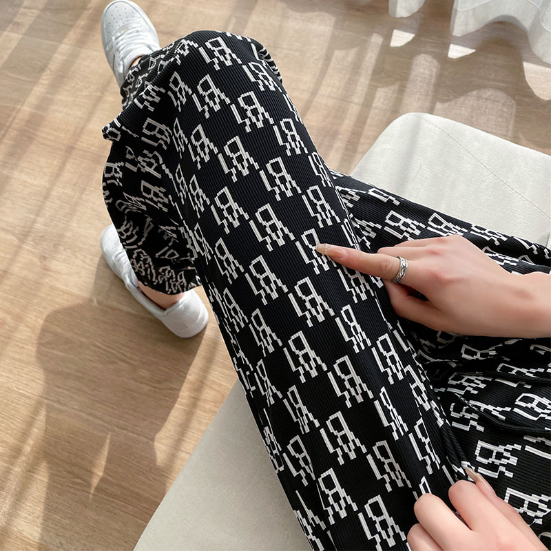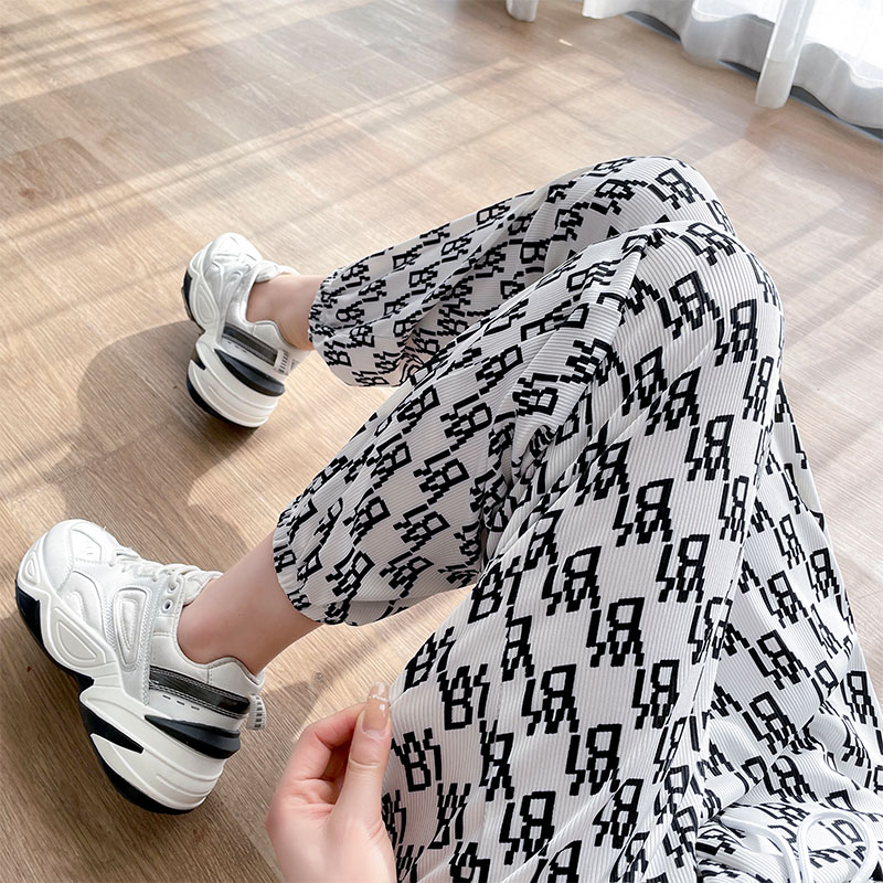 High waist sports striped wide pants female mother summer thin section small vertical straight tube ice silk 2022 new