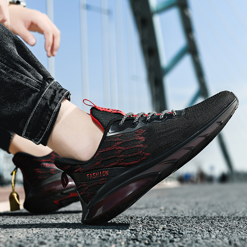 Shock-absorbing popcorn sneakers round head men's summer new mesh breathable men's shoes ultra-light soft bottom casual running shoes