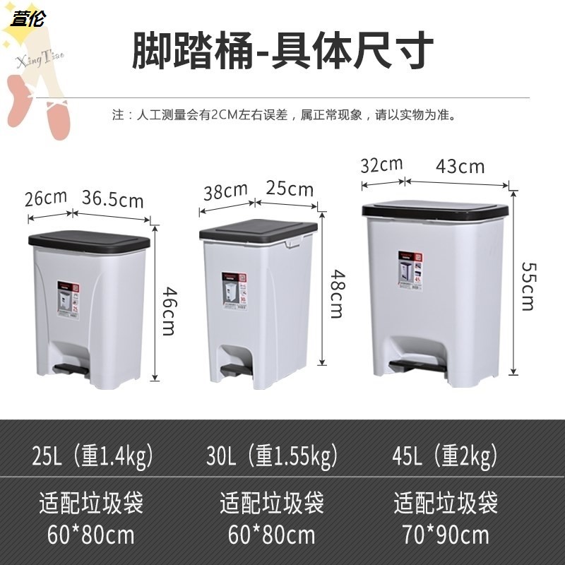 12L pedalling 2 rolls of garbage bags 50 * 60 25L pedalling with two rolls 60 60 * 80 garbage bags 30 30L pedaling with two rolls 60 60 * 80 garbage bags 30
